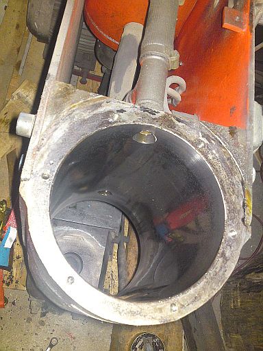Ventilgehäuse, oben der Flansch zum Luftfilterkasten, links geht´s