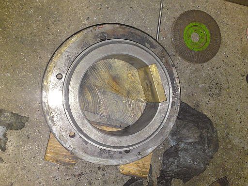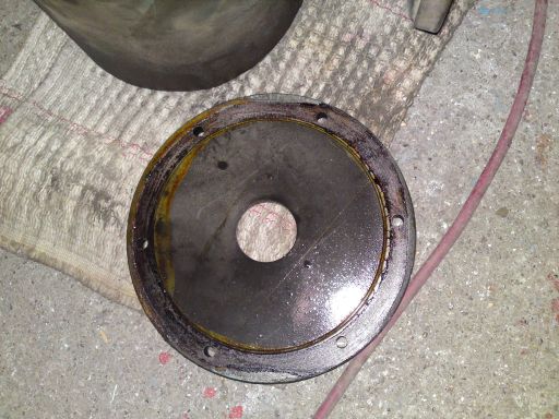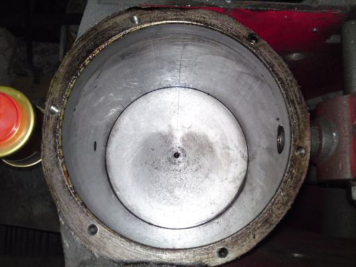 Gehäuse war. The cover of the driven piston with some residue of the old sealant or gasket |