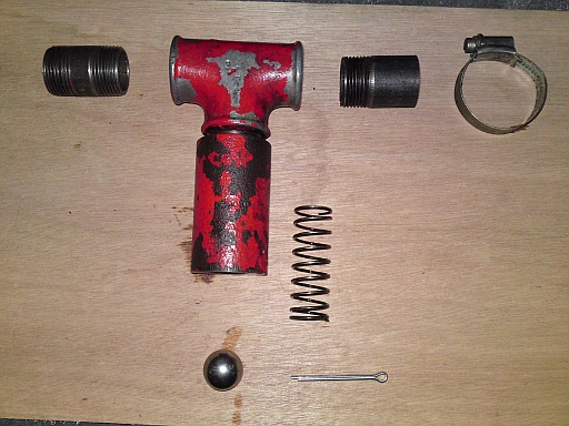 Überdruckventil in seinen Einzelteilen. Die Feder drückt die