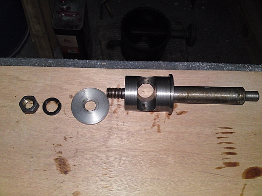 Lager des Pleues von vorne. Die Kronenmutter wurde gelöst und die