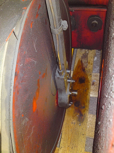 werden. Im Hintergrund ist schemenhaft die Schwungscheibe zu