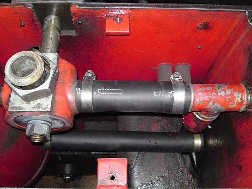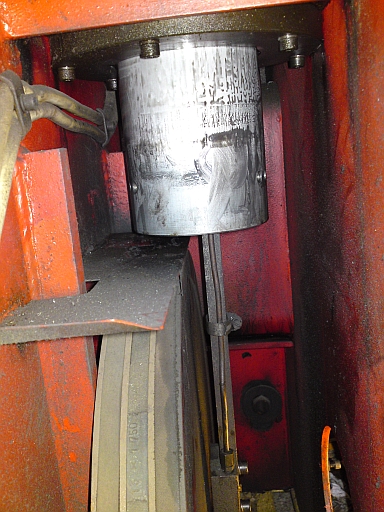 vorderen Zylinder, von oben die Stange von Fußpedal, links der
