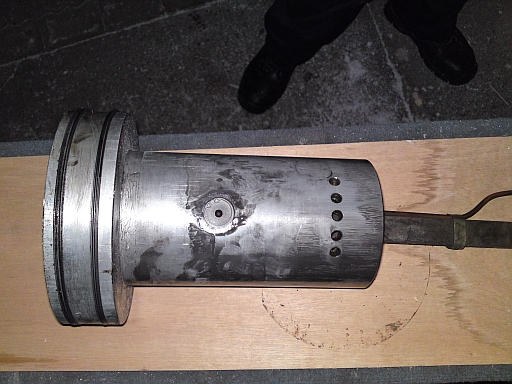 zu sehen: der Zylinder mit dem Deckel, unten die Führung des